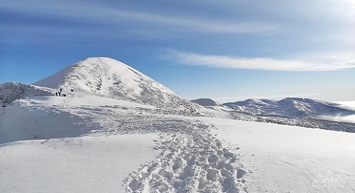 We got out of the sleeping bags. The weather was fabulous, the sun was shining, the snow was shimmering and Hoverla was right before us in all its glory!